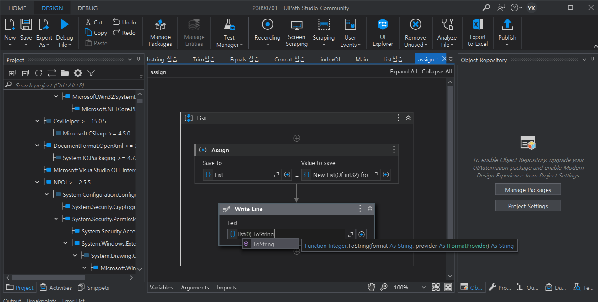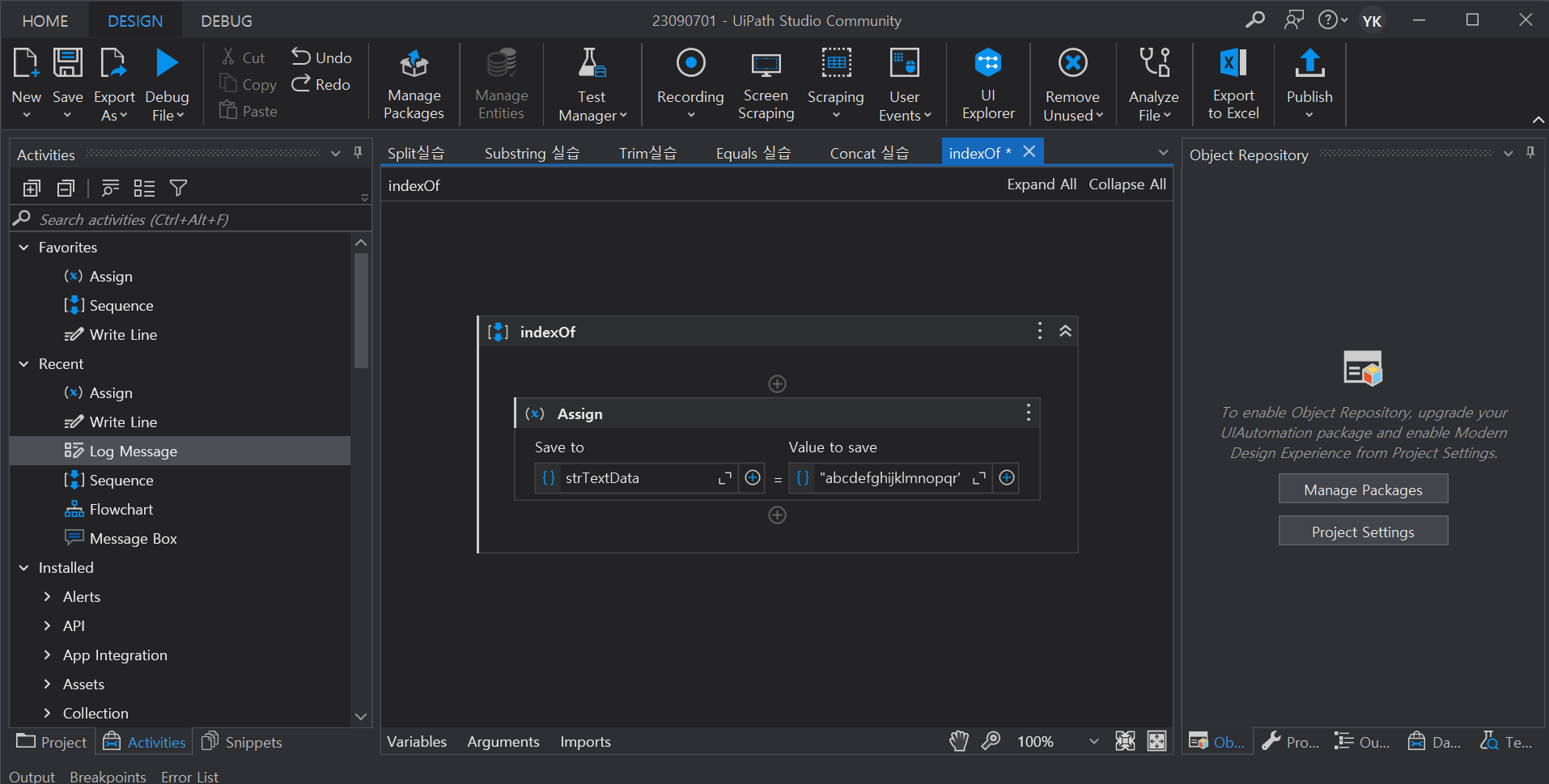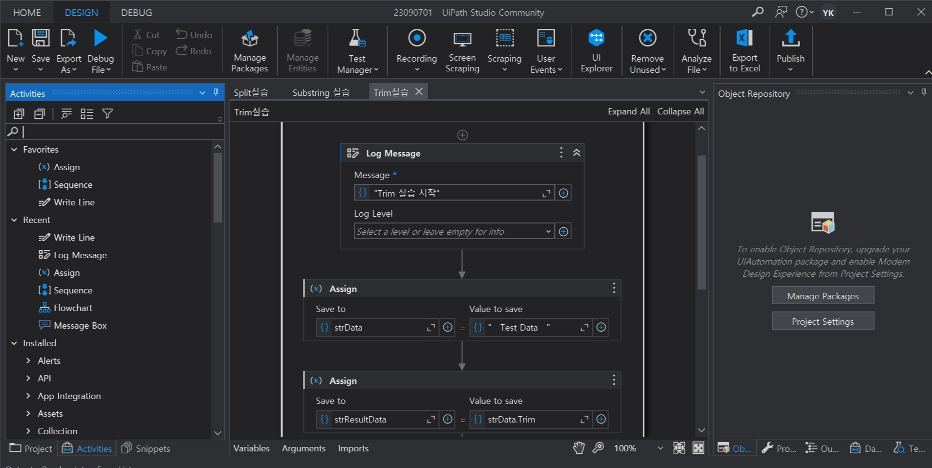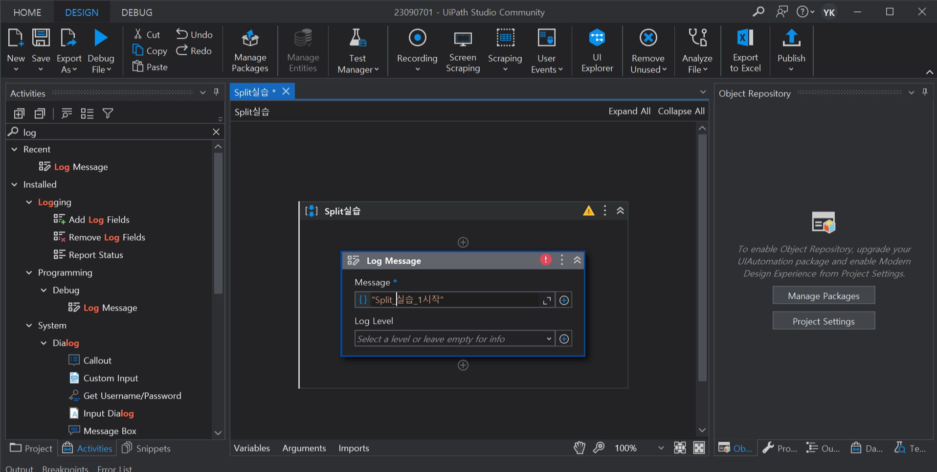 2. Log Message 시작, 종료 사이에 Assign 액티비티 추가