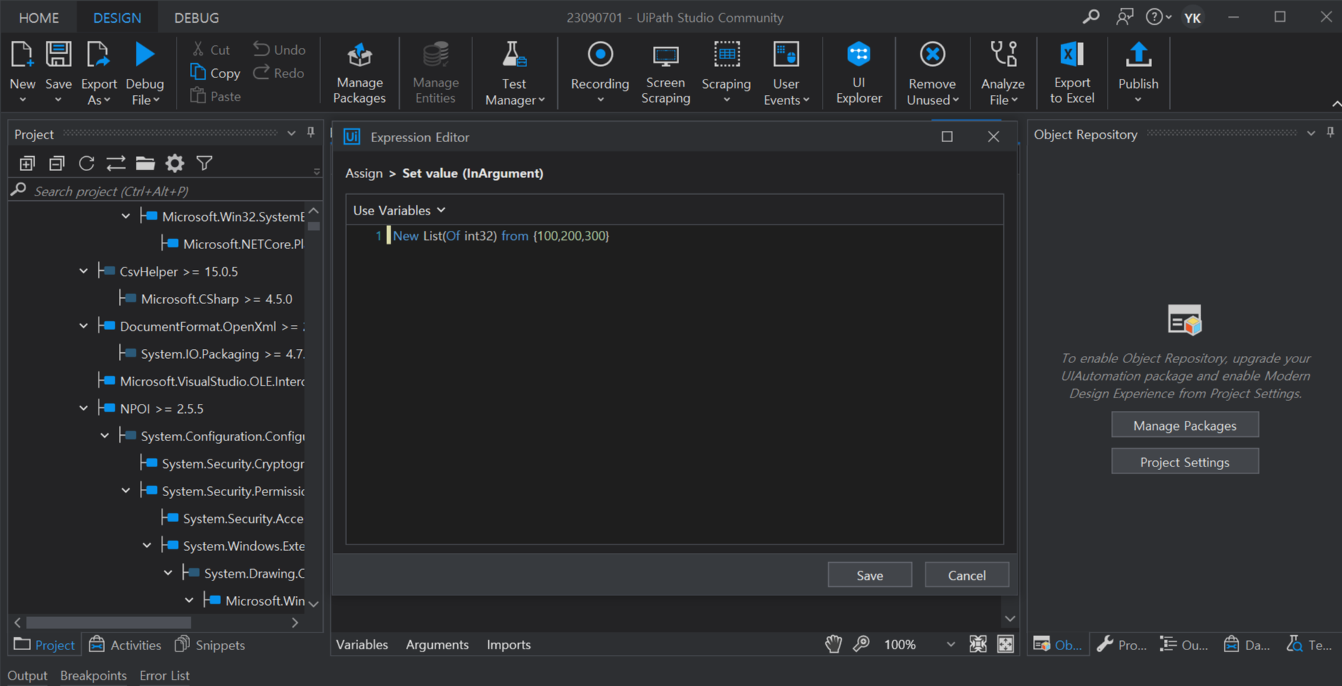 2. Value to Save에 New List(Of int32) from {100,200,300} 입력