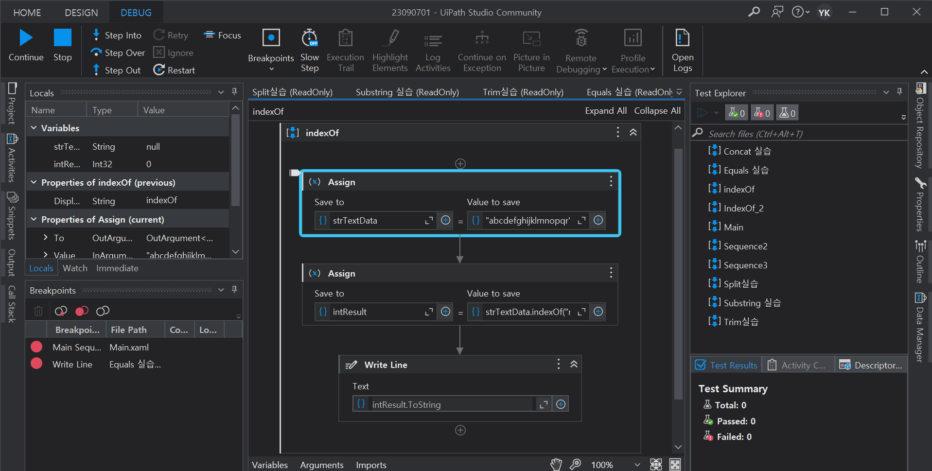 Assign 액티비티 추가하여 strResult Value to save에 strTextData.Substring(10,2)
