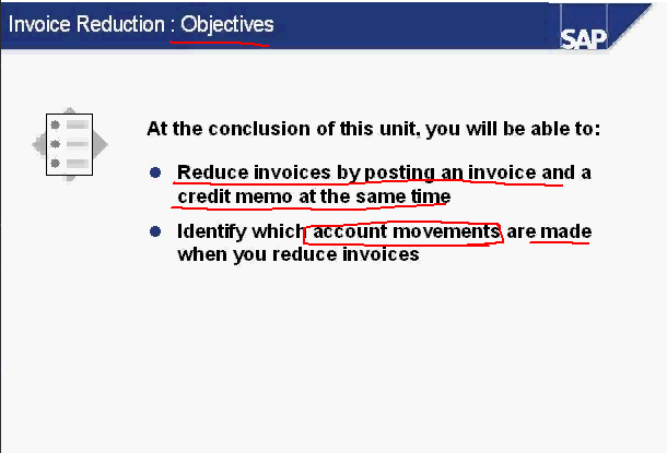 - Invoiced Reduction 은 Credit Memo 끊는 것